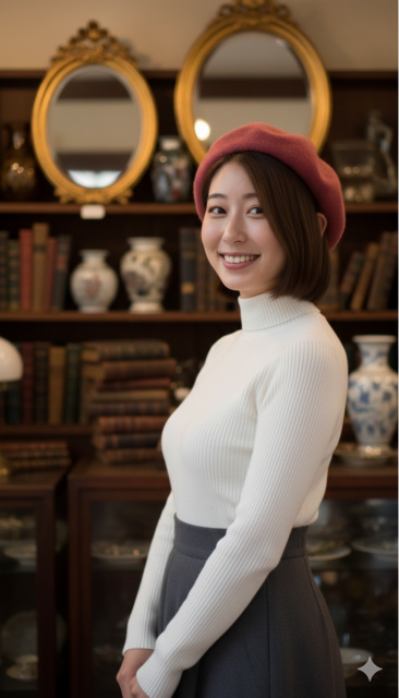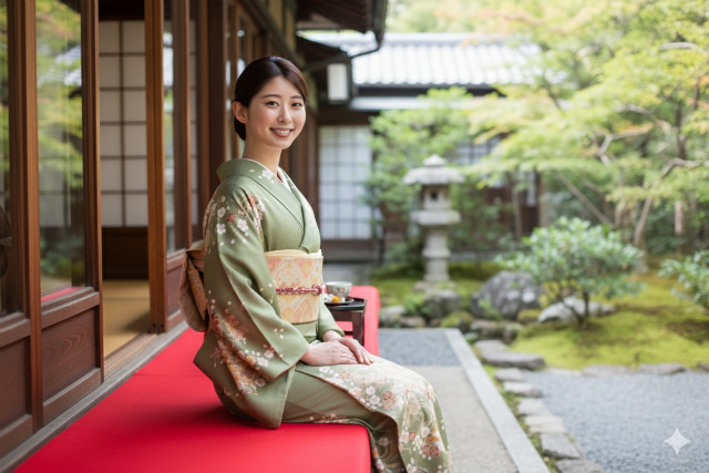 同じモデルさんを生成AIで笑顔の和服姿にも変えられます。