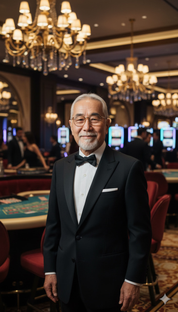 で、タキシードを着せて背景をカジノに変えると・・・。
