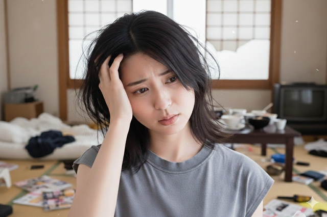 こちらは無料画像素材サイトから引用したモデルさんを生成AIで生活感を滲み出させてみました。