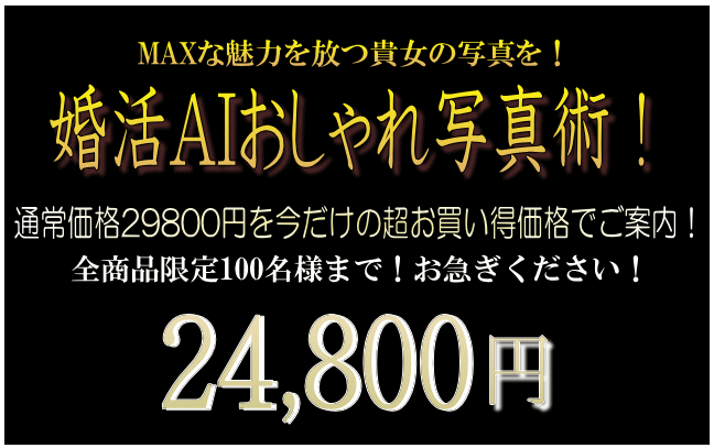 ぜひ生成AIを生かして、MAXな魅力を放つ自分の写真を創出し、素敵な出会いを実現させ皆さんの婚活を成就して幸福な人生を手に入れましょう!