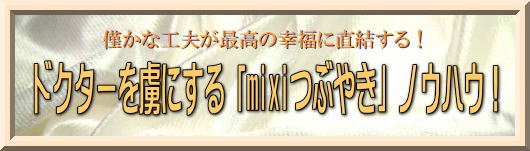 「医師を虜にする「mixiつぶやき」ノウハウ!」は、SNS「mixi」のコンテンツである「つぶやき」の活用を工夫する事で「mixi」に登録している莫大な独身ドクターに皆さんの内面的魅力を伝えていただくための情報です。ここに掲載してテクニックは一つ一つを見ればささやかな工夫ではありますが、「ちりも積もれば」のことわざの様に、複合的に活用すれば、多くのライバルから抜きんでて皆さんの魅力を際だたせる、差別化・ブランディングが可能となります。短文で軽く見られがちな「つぶやき」ですが、徹底的に使い倒せばドクターアプローチのための強力な婚活ウェポンとなります。「医師を虜にする「mixiつぶやき」ノウハウ!」は以下のような構成で成り立っており、皆さんがドクター婚活を成就させるために、高い訴求力を持つ「mixiつぶやき」をリリースする10のノウハウをお伝えします。
